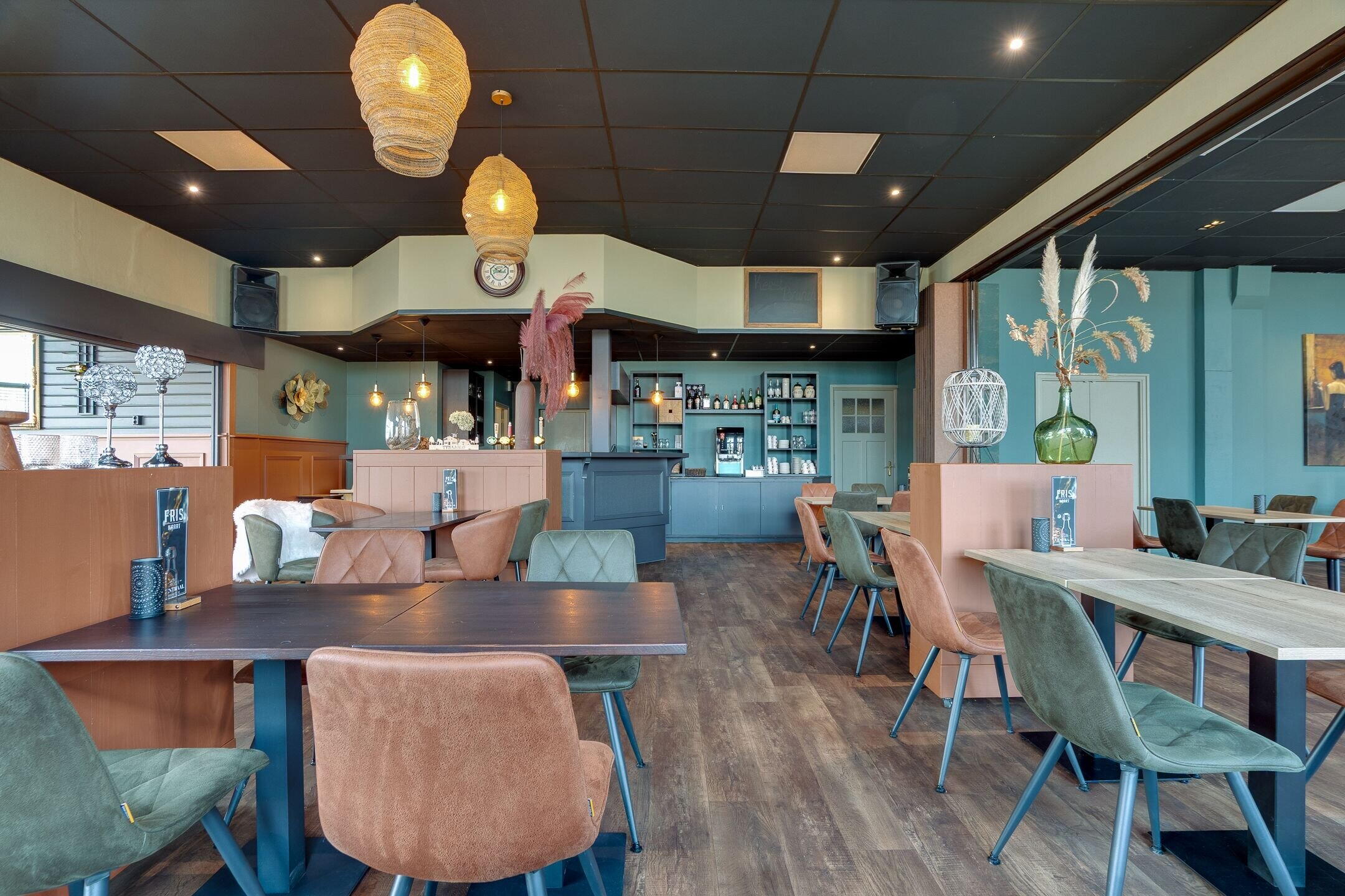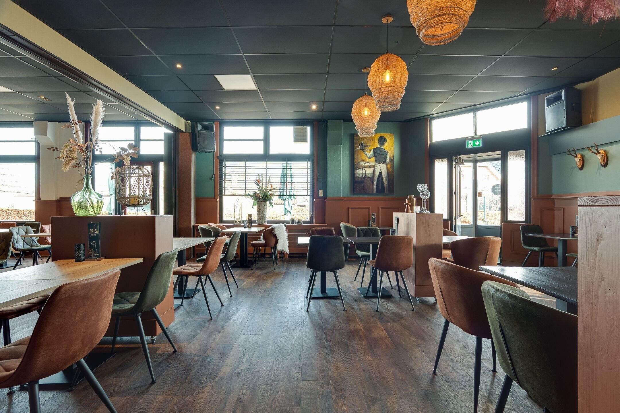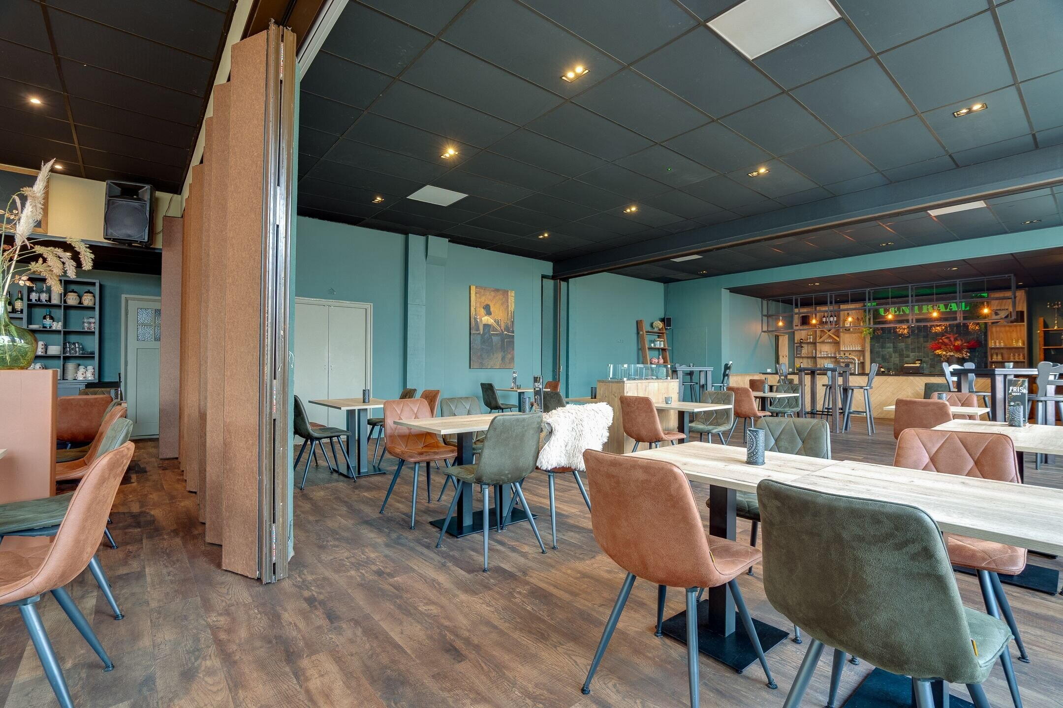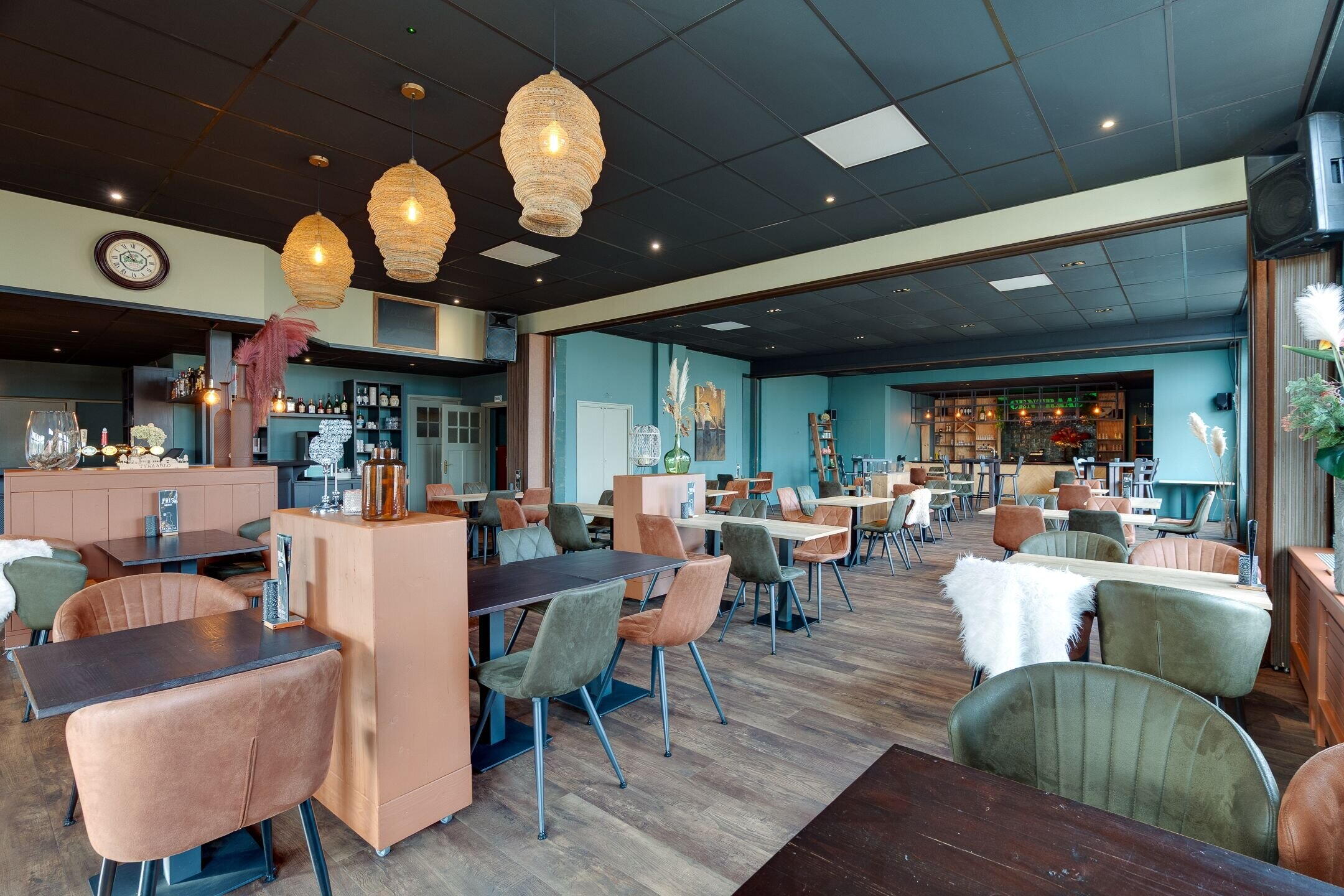 De begane grond is ingericht als restaurant, een sfeervolle multifunctionele ruimte dat door middel van 2 schuifwanden eenvoudig te vergroten is tot bijvoorbeeld een zaal van 225m2 . De begane grond heeft sinds 2020 qua wand- en vloerafwerking en inventaris een enorme upgrade gehad en is daarmee getransformeerd tot een sfeervolle moderne ruimte; de gehele vloer van de zaal is voorzien van schuimbeton met daarop een fraaie pvc-vloer. Door 2 schuifwanden kan het vloeroppervlak van ca. 110m2 naar ca. 160m2 tot een complete ruimte van ca. 225m2 vergroot worden en uiteraard zijn de 3 ruimtes van ca. 110m2 met bar, de tussenzaal van ca. 50m2 met een terrasdeur en het bargedeelte van ca. 65m2 multifunctioneel inzetbaar en afzonderlijk te gebruiken.