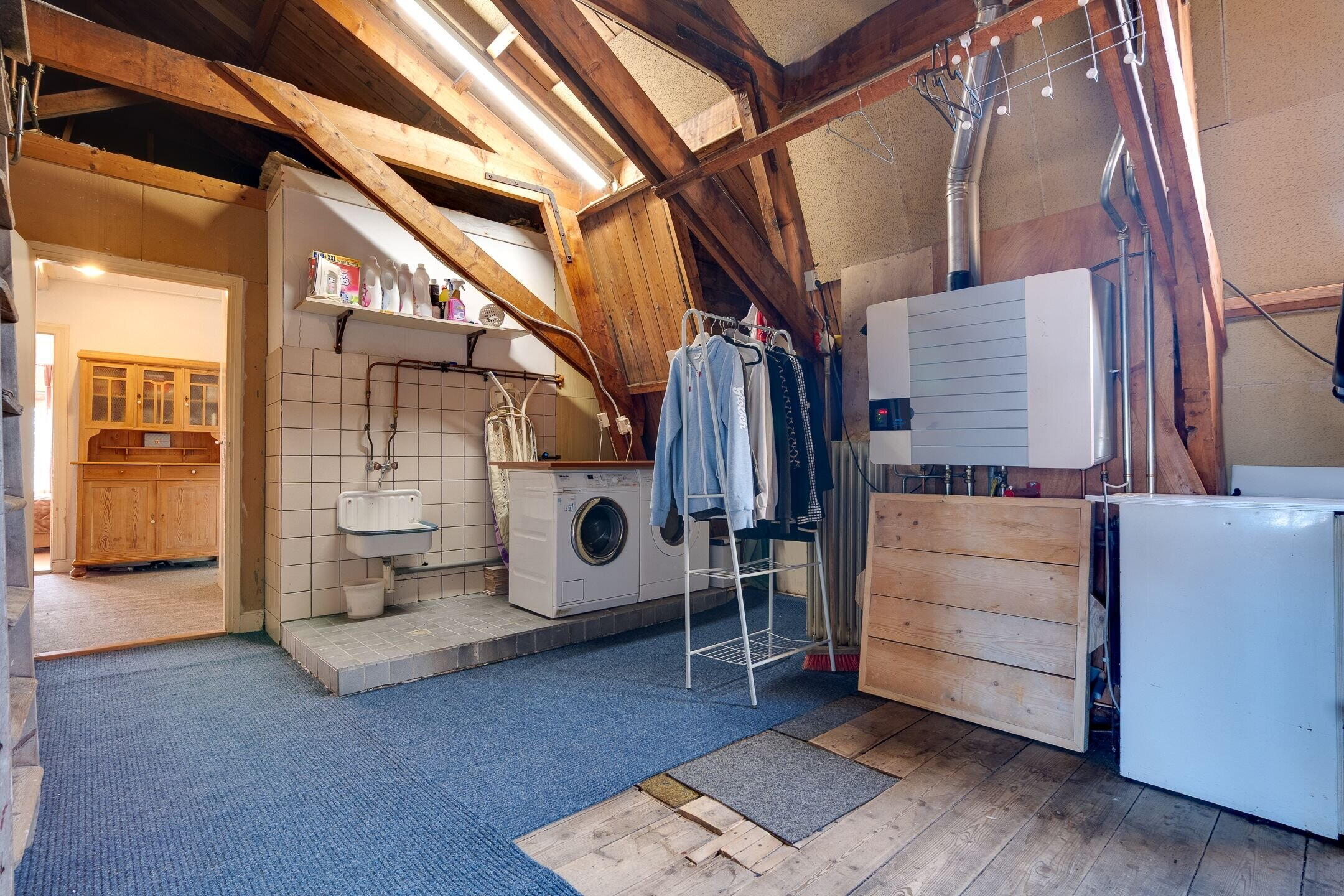 Op de eerste verdieping van het pand bevindt zich een ruime bedrijfswoning met een gebruiksoppervlakte wonen van ca. 170m² – ideaal voor eigenaren die wonen, werken en ondernemen willen combineren. De woning beschikt over een overloop met inbouwkasten en toegangsdeuren naar het toilet, de badkamer die is voorzien van een douchecabine en een dubbele wastafel, de woonkamer, 2 slaapkamers (Schoolstraatzijde) en toegang tot een grote nog verder in te delen en onafgewerkte ruimte met de opstelplaats van het witgoed en de CV-ketel. Deze ruimte geeft tevens toegang geeft tot het platte dak met mogelijkheden voor een groot dakterras, een reeds afgewerkte geïsoleerde slaapkamer en een onafgewerkt vertrek.